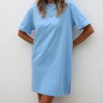 Mavi yırtmaçlı basic elbise