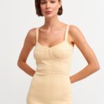 Göğüs detay askılı elbise